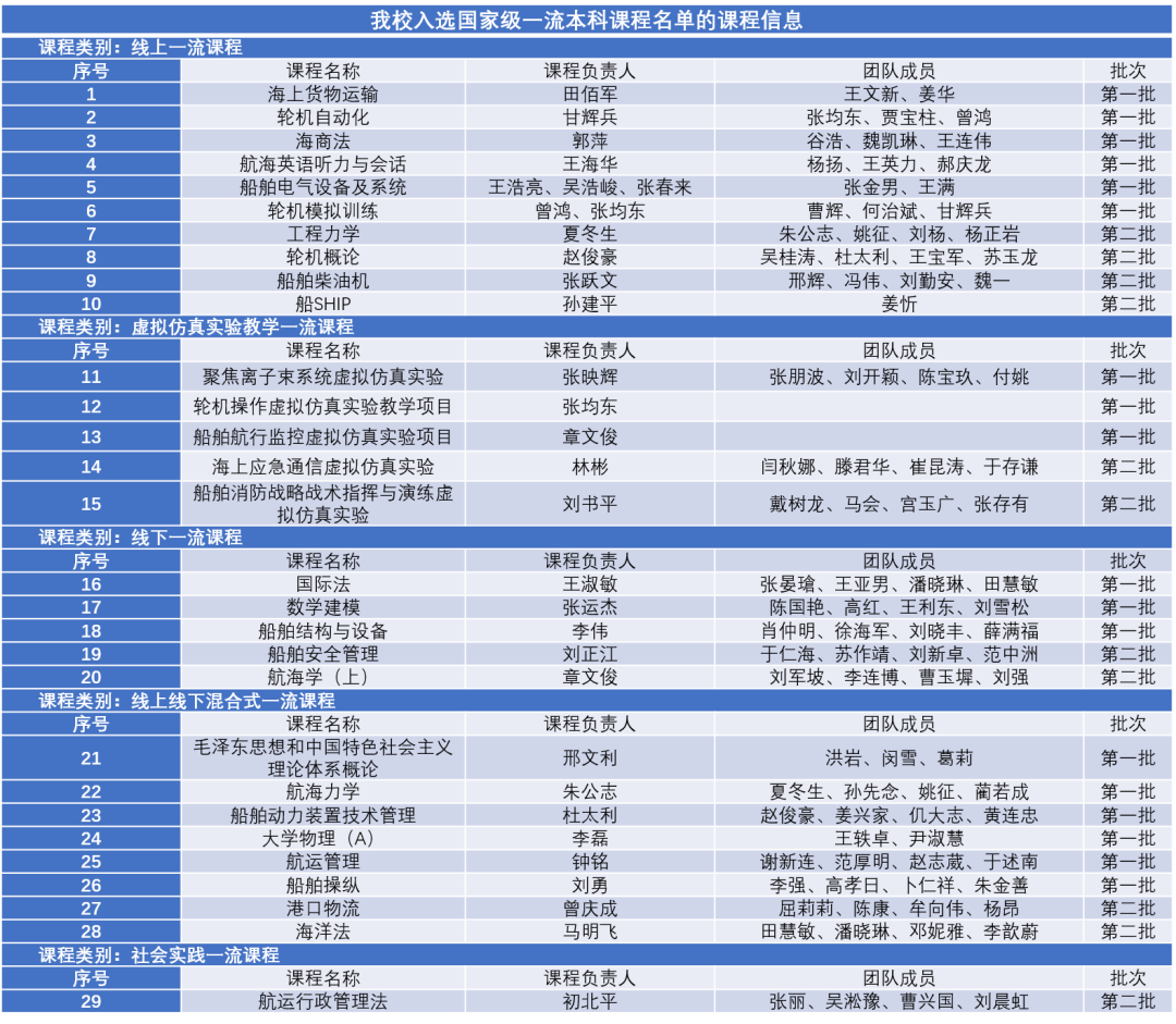 接下来,学校将充分发挥一流课程的示范作用,持续贯彻落实《教育部关于一流本科课程建设的实施意见》,科学实施课程评价,前瞻性的开展基于知识图谱的“AI课程”建设,不断推进课程改革创新;并进一步夯实基层教学组织,提高教师教学能力,推动本科教育教学改革,助力学校“世界一流海事大学”建设。