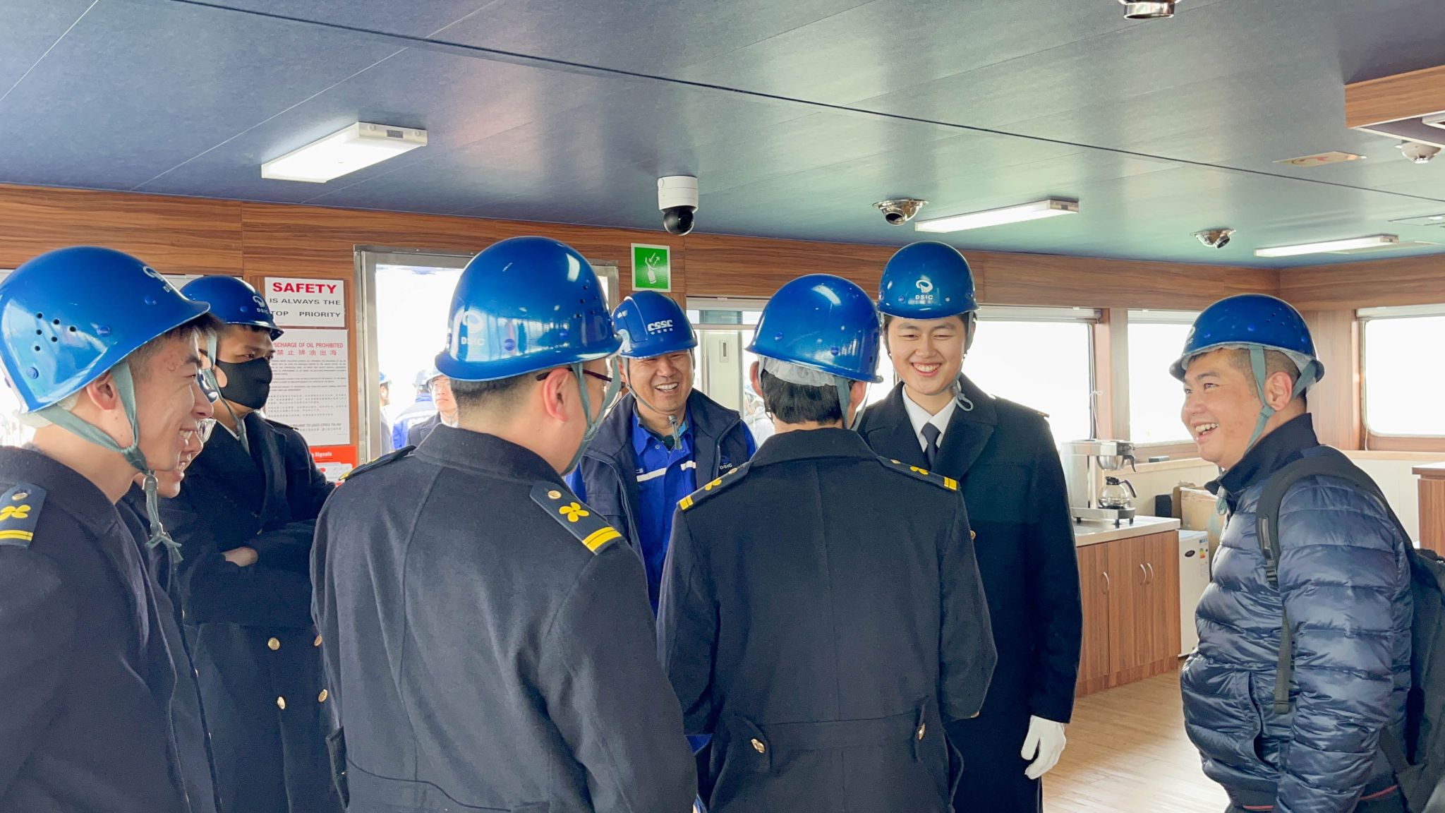 3月2日,学校教务处组织航海学院、轮机工程学院部分教师和2022级招商校企合作班学生赴大连船舶重工(大连造船厂)参观招商轮船新交付船舶“凯盟”轮,深圳海顺海事服务有限公司船员招聘部经理谢元辉、学校教务处副处长王启福领队参加。