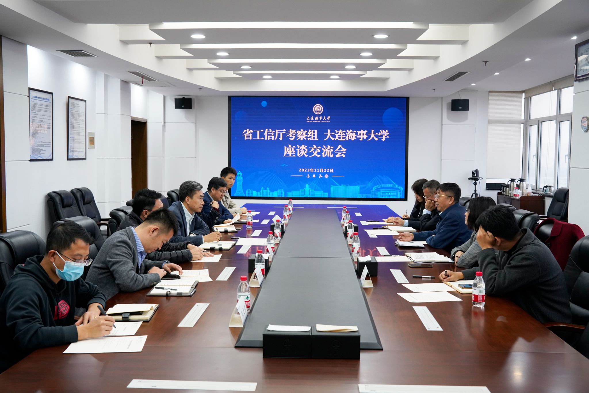 初北平代表学校对工信厅领导来访调研表示热烈欢迎,对工信厅给予学校工作的支持表示感谢。他介绍了学校的整体情况和郝鹏书记来校考察达成的共识,并表示学校将充分发挥在海事科技领域的优势,服务好辽宁沿海经济带高质量发展,服务好大连海洋中心城市建设。