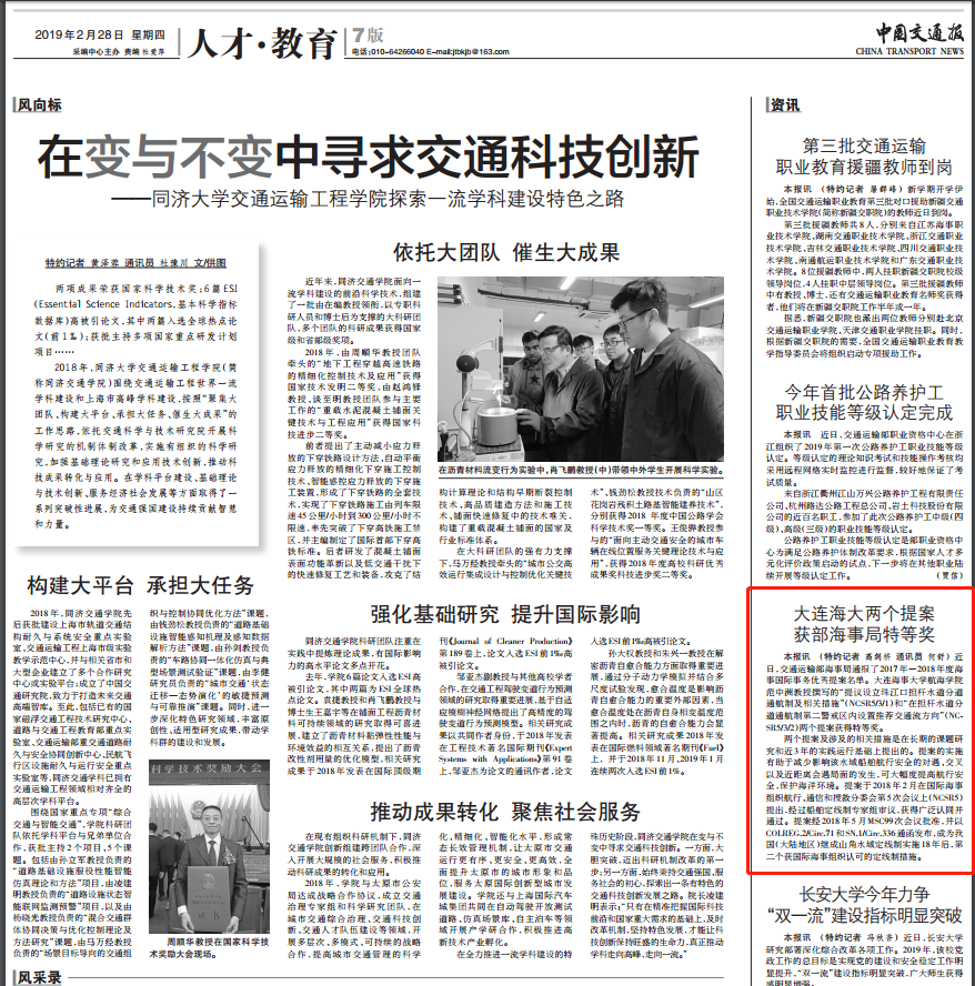 本报讯 (特约记者 高剑桥 通讯员 何舒) 近日,交通运输部海事局通报了2017年―2018年度海事国际事务优秀提案名单。大连海事大学航海学院范中洲教授撰写的“提议设立珠江口担杆水道分道通航制及相关措施”(NCSR5/3/1)和“在担杆水道分道通航制第二警戒区内设置推荐交通流方向”(NCSR5/3/2)两个提案获得特等奖。