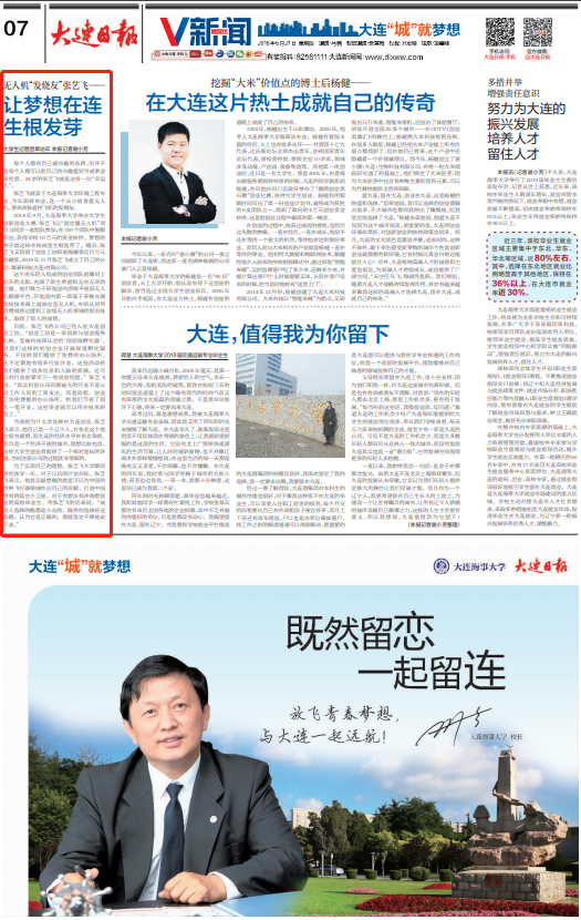 张艺飞就读于大连海事大学环境工程专业,今年即将毕业,是一个从小就喜爱无人机、喜欢改装遥控飞机的发烧友。