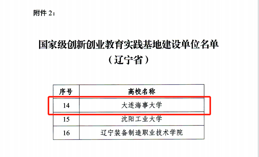 近日,教育部办公厅发布了《关于公布国家级创新创业学院、国家级创新创业教育实践基地建设名单的通知》(教高厅函〔2022〕22号),大连海事大学获首批“国家级创新创业教育实践基地”建设单位。这是我校继2019年获评全国创新创业典型经验高校(50强)、2020年Hi-C空间获国家级众创空间之后,持续推进创新创业教育改革工作获得的又一国家级殊荣!