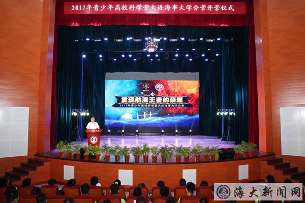 7月11日,在我国第十三个航海日来临之际,2017年青少年高校科学营大连海事大学分营开营仪式在大学生活动中心多功能厅举行。来自天津、重庆、安徽、辽宁等省市和香港特别行政区、台湾地区的240名优秀高中生、带队教师、科学营志愿者汇聚“航海家的摇篮”,重启“航海王者的荣耀”。