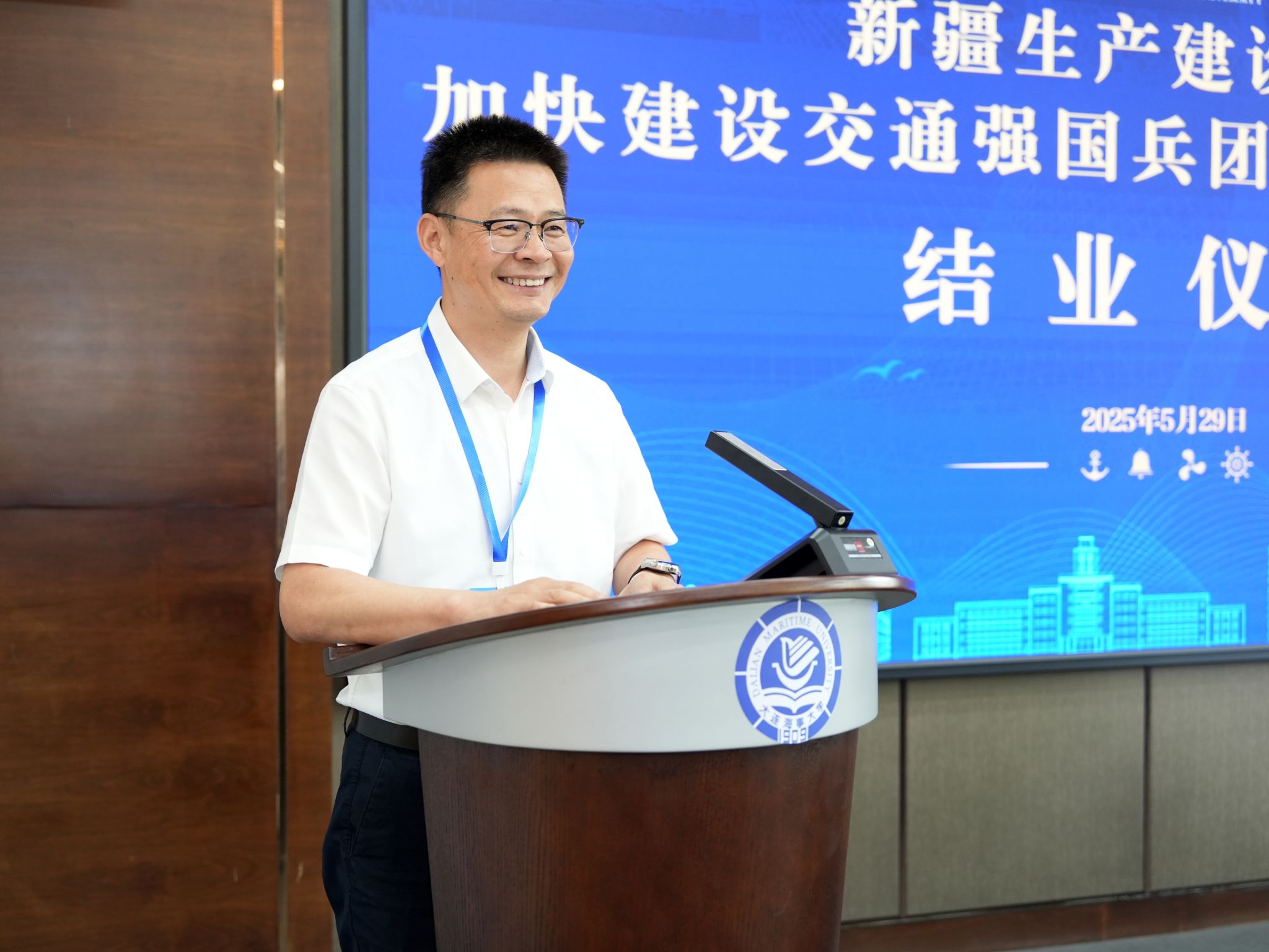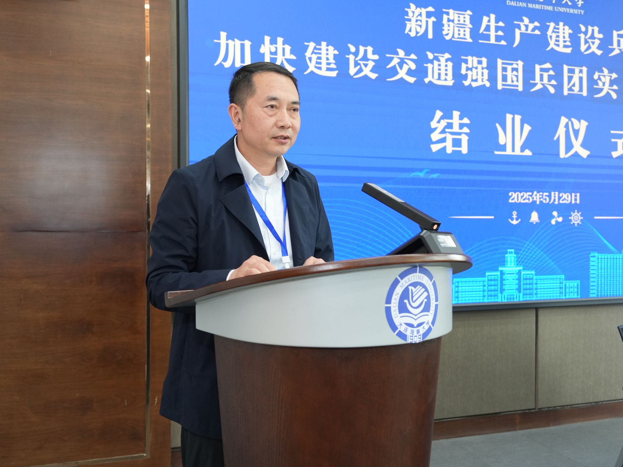 5月25日至29日,由新疆生产建设兵团干部学院与大连海事大学联合举办的“新疆生产建设兵团加快建设交通强国兵团实践专题研讨班”在我校顺利举行。此次培训为期五天,通过专题讲座、交流研讨与实践教学等形式,立足兵团职责使命,深入学习习近平总书记关于交通强国的重要论述,深入把握《国家综合立体交通建设规划纲要》等国家战略规划要求,紧紧围绕对干部人才的担当意识、战略思维、创新理念、履职能力等方面开展系统性、全方位培训。