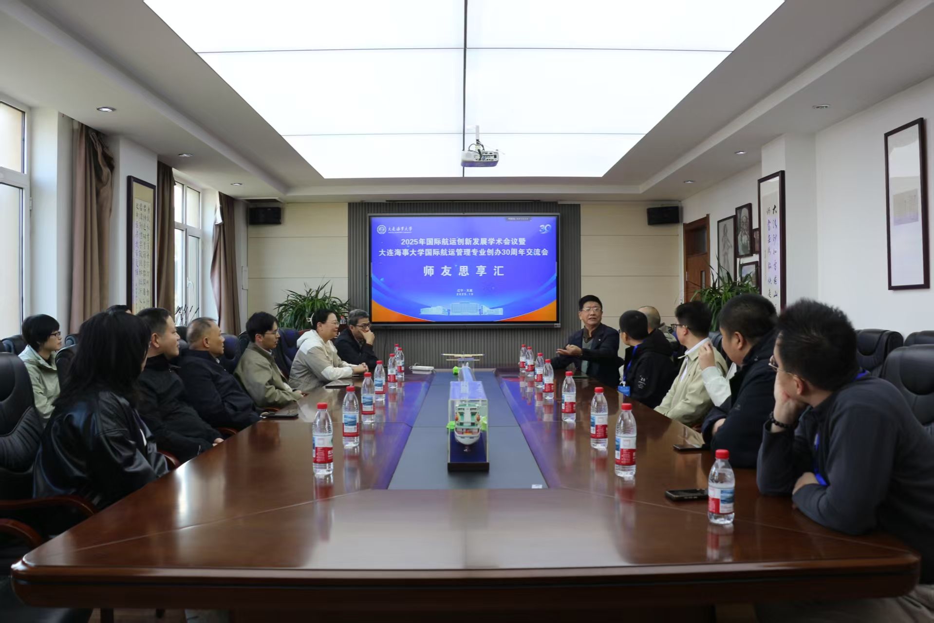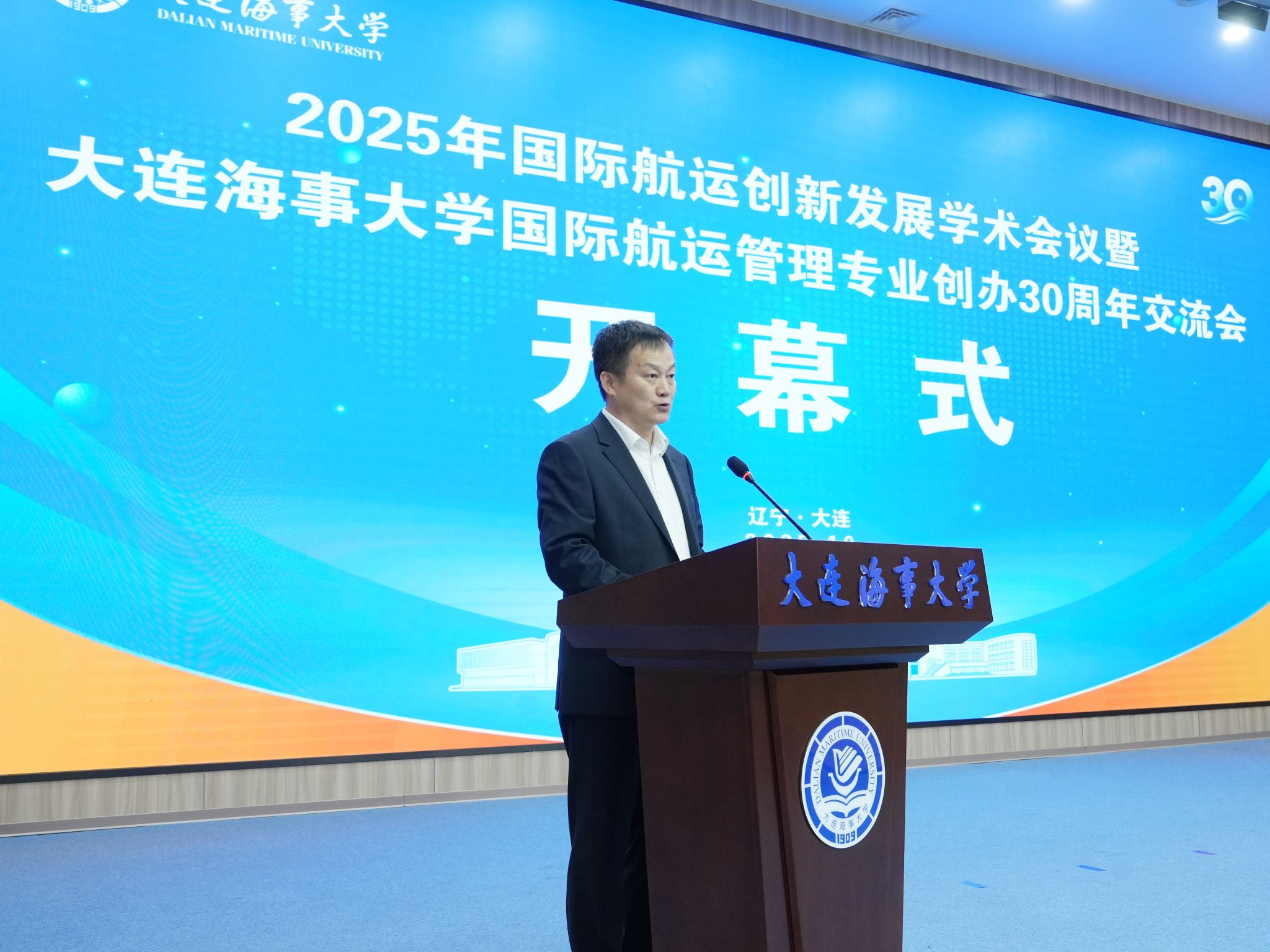 2025年10月17日至19日,由大连海事大学交通运输工程学院主办、大连春安航运有限公司协办的“2025年国际航运创新发展学术会议暨大连海事大学国际航运管理专业创办30周年交流会”在大连海事大学顺利召开。校党委书记许民强、原交通运输管理学院院长杨赞出席会议,会议由副校长曾庆成主持。