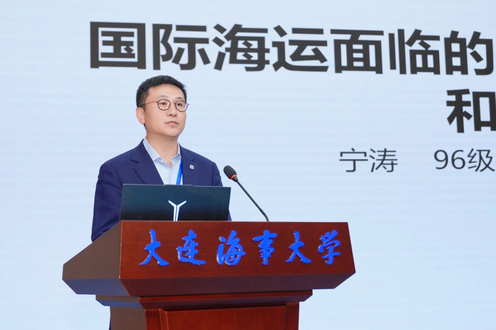 交通运输部水运科学研究院经济政策与发展战略研究中心(法律研究中心)主任、大连海事大学1996级校友,教育部交通运输水路运输教学分委员会委员宁涛作《国际海运面临的宏观环境及行业趋势》报告。