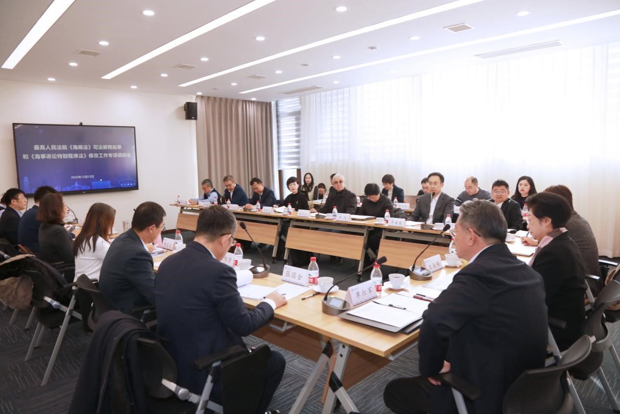 12月12日,“最高人民法院《海商法》司法解释起草与《海事诉讼特别程序法》修改工作专项调研会”在大连海事大学召开。最高人民法院审判委员会副部级专职委员、二级大法官王淑梅,最高人民法院第四巡回法庭副庭长、一级高级法官胡方,最高人民法院民四庭二级高级法官黄西武,民四庭法官马玲、杨育出席会议。辽宁省高级人民法院党组成员、副院长李成富,辽宁省高级人民法院民三庭庭长贾春雨,大连海事法院党组书记、院长张国全,大连海事法院党组成员、副院长孙光,大连海事法院原副院长、大连海事大学法学院客座教授关正义,山东大学法学院副院长付本超教授,辽宁恒信律师事务所高级合伙人祝默泉,大连船舶重工集团法律合规部部长杜杰,中国人民财产保险股份有限公司大连市分公司法律合规部总经理高杨等海事审判、理论与实务专家受邀参加研讨。大连海事大学原校长司玉琢教授、校长单红军教授、法学院院长朱作贤及教师代表参加会议。