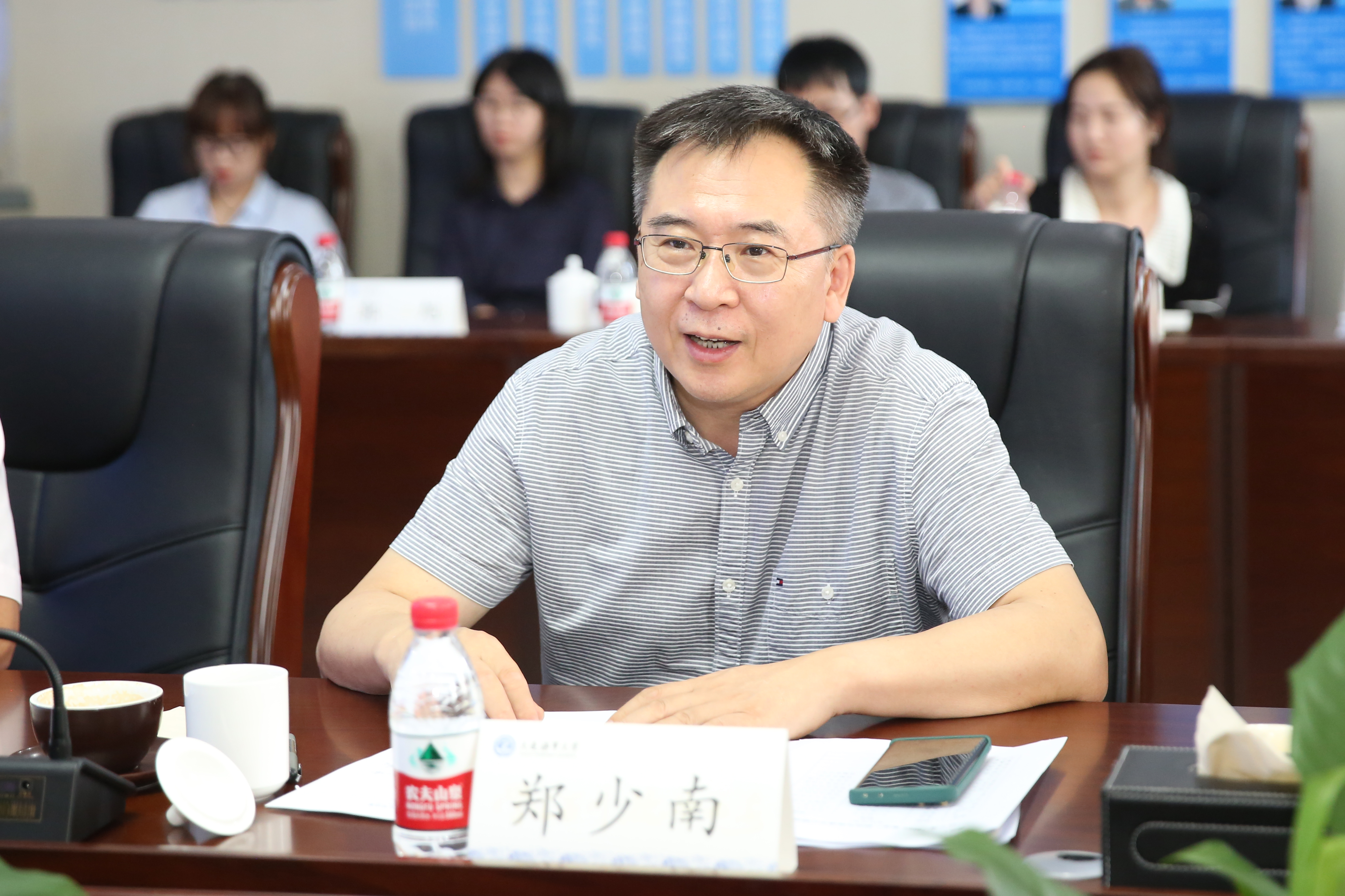 郑少南代表学校对戴玉林一行来校指导中心工作表示热烈的欢迎和衷心的感谢。他指出,中心的成立是学校积极服务地方经济建设的又一重大实践和生动写照,学校将直面挑战,紧抓机遇,与省贸促一道同心协力将中心做实、做大、做强,切实为服务地方政府和省内企业发挥示范带头作用。他强调,实体化平台建设是学校治理体系改革的重要内容,学校将以“海洋法治与文化研究院”高端智库实体化平台为模板打造“RCEP智库”研究与促进中心,切实保障中心实体化运行,进一步提升中心在国内和国际的影响力。初北平在会上指出,中心要进一步加强顶层设计、创新工作思路,要发挥产学研集成优势,凝聚各方资源,加强与政府、企业、高校智库的合作。并就本次会议任务落实和下一次会议安排进行了部署。