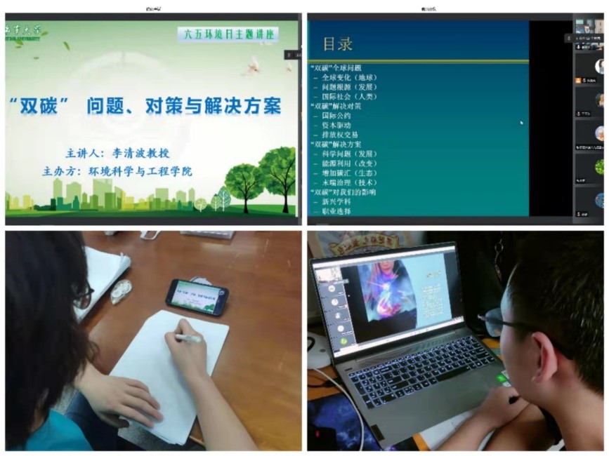 学院邀请李清波教授开展线上“双碳”专题讲座。李清波教授作为绿色能源和清洁低碳领域的专家,以《全球“双碳”问题、对策及解决方案》为题,为同学们讲解绿色发展理念的重要性。通过专题讲座,使环境学子在学习中增加有关环境保护与污染治理的新知识以丰富知识储备,增强自己的专业素养,在行动中以身作则,展现海大学子的青春风采。