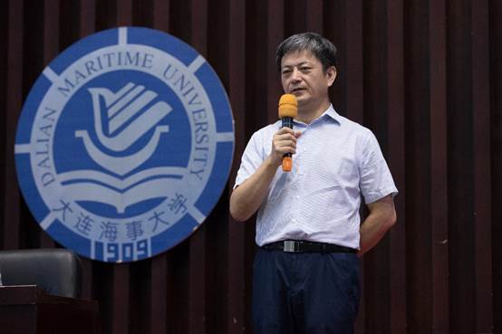 他鼓励学生要以新中国第一代远洋船长贝汉廷、中国唯一的女轮机长王亚夫为榜样,立足海运,勇于坚守,为成为业界精英、社会栋梁做出努力。