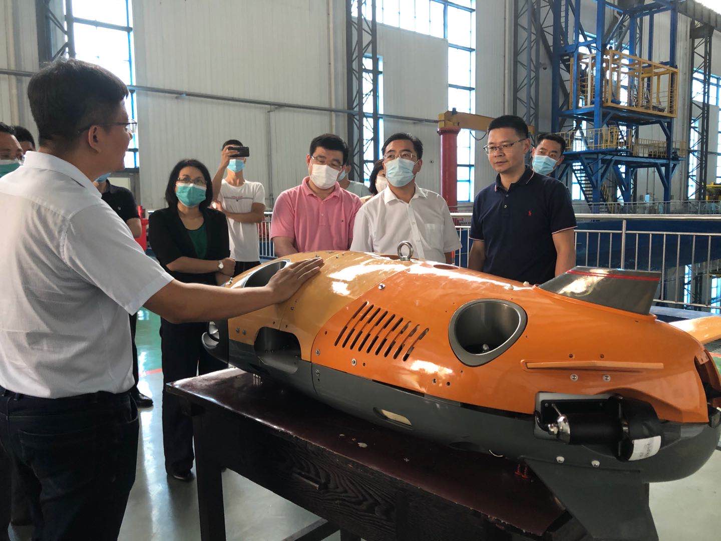 会前,调研组一行先后到救助打捞水池、航海模拟器等进行了实地调研并观看等相关科技成果展示。