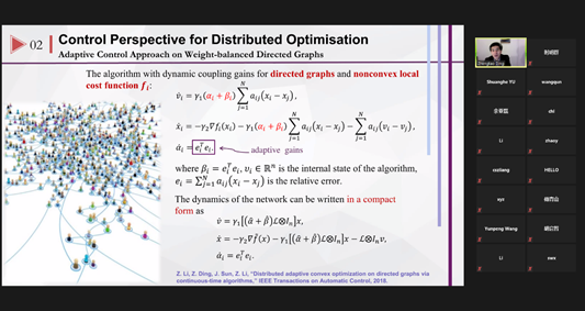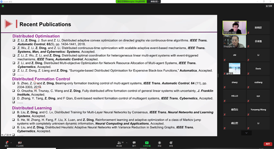 12月11日下午,英国曼彻斯特大学丁正桃教授应我校船舶电气工程学院邀请,做了题为《基于一致性的分布式算法:优化、控制和机器学习》的学术报告,报告采用线上Zoom会议方式进行,我校相关学科众多师生参加了报告会。