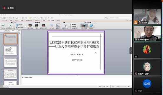 2020年12月21日下午,南开大学孙明玮教授应大连海事大学船舶电气工程学院邀请,在腾讯会议上做了一场题为“飞控实践中的自抗扰控制应用与研究—行业力学理解继承中的扩维创新”的学术报告,学校相关学科众多师生参加了此报告会。