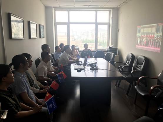 科技处全体人员在综合楼718会议室集体观看了“庆祝中国共产党成立一百周年大会”现场直播,聆听了习近平总书记在庆祝大会上的讲话。在看到庆祝大会上巨大的金色党徽醒目屹立、看到直8L挂出4条巨大“万岁”条幅、看到71架战鹰飞过天安门广场组成“71”“100”字样、看到15架歼-20飞机组成3个梯队呼啸而过时,党员同志们由衷发出阵阵感叹;在听到总书记铿锵有力地宣告,中华民族迎来了从站起来、富起来到强起来的伟大飞跃,实现中华民族伟大复兴进入了不可逆转的历史进程时,党员同志们情不自禁地热烈鼓掌。