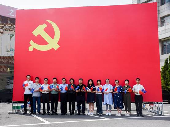 庆祝大会之后,科技处全体同志们手持党旗、校旗,来到校园内的大型党旗和建党百年标志性纪念牌前合影留念,并共同祝福伟大的中国共产党生日快乐!
