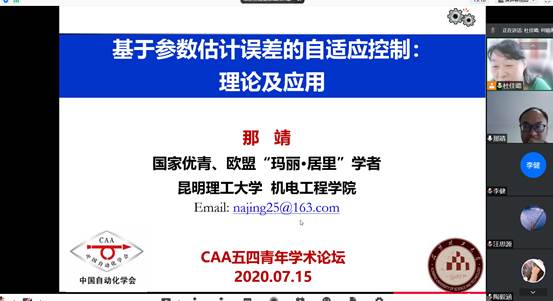 2021年7月15日上午,昆明理工大学那靖教授应大连海事大学船舶电气工程学院邀请,在腾讯会议上做了一场题为“基于参数估计误差的自适应控制:理论及应用”的学术报告,我校相关学科师生50余人参加了此报告会。