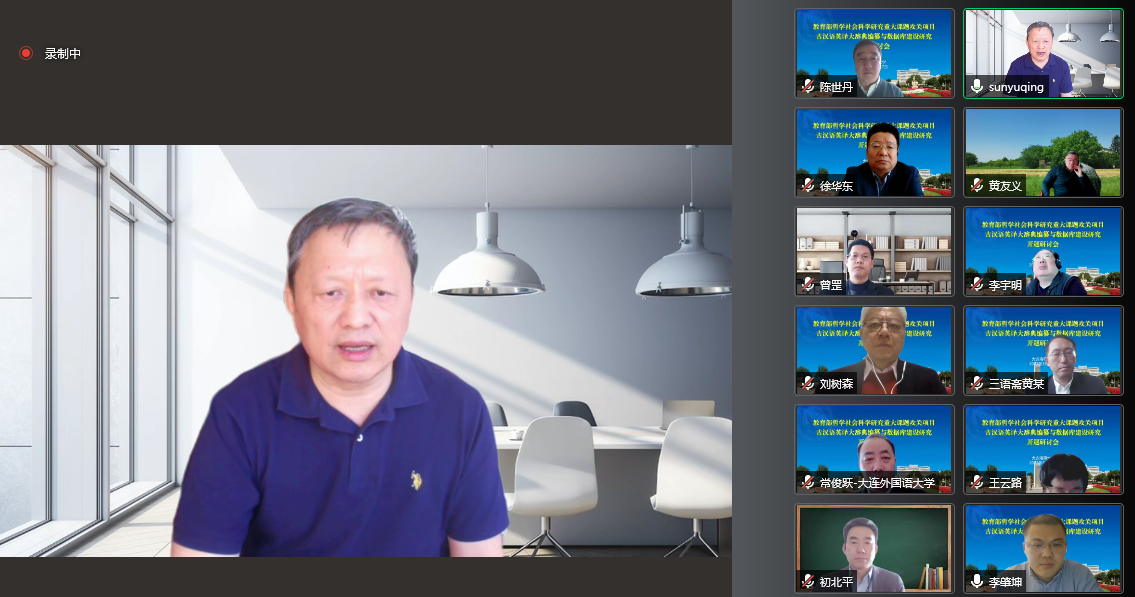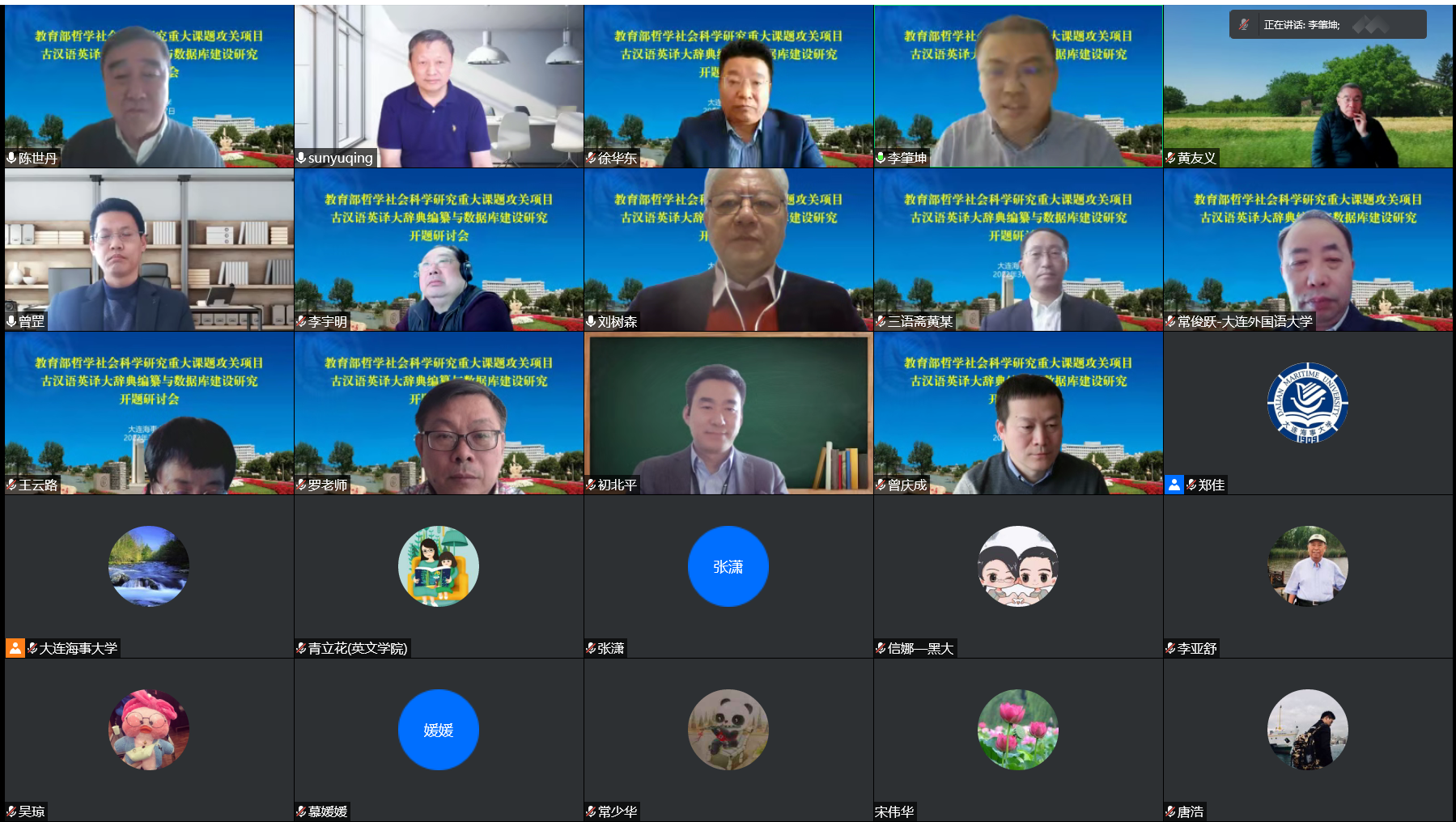 3月27日,我校人文社科研究院徐华东编审担任首席专家的2021年度教育部哲学社会科学研究重大课题攻关项目“古汉语英译大辞典编纂与数据库建设研究”开题研讨会以线上视频会形式召开。我校校长孙玉清、副校长初北平出席会议,人文社科研究院院长李肇坤主持会议。