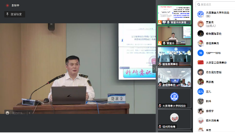 5月24日上午,“以船员业务为例浅谈如何开展海事科技项目研究”专题报告如期开展。本次讲座采取线上举行方式,由辽宁海事局船员考试中心主任饶滚金主讲。