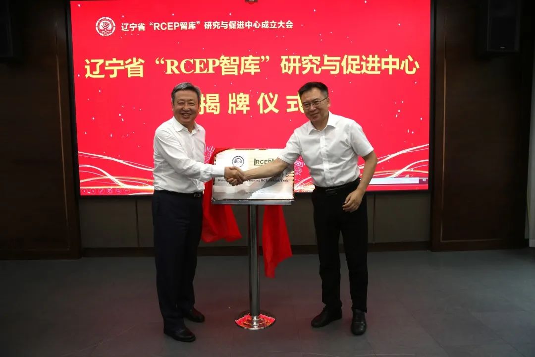 戴玉林和郑少南共同为辽宁省“RCEP智库”研究与促进中心揭牌。