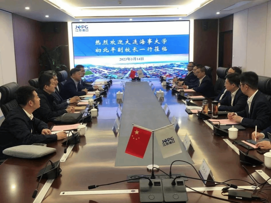 3月14日下午,初北平一行走访了江苏省港口集团,集团副总经理、党委委员谭瑞兵对初北平一行表示欢迎,并介绍了集团的基本情况、发展历程、经营范围等情况。初北平感谢江苏省港口集团长期以来对学校的关心、支持和帮助,并介绍了学校近年来的建设发展情况。他表示,江苏省港口集团拥有全省航运服务中心、大宗物资储运交易中心和现代物流中心,航线通达全球各地,希望双方能够在人才培养、科技创新等领域开展更深入的合作,充分整合资源,积极探索校企合作新途径和新模式,实现合作共赢、共同发展,助力交通强国建设。谭瑞兵表示,大连海事大学深耕海事航运领域,坚持聚焦海事、服务交通,为国家航运业输送了大批高素质人才,希望双方以产学研结合为纽带,以重点项目合作共建为基础,以人才培养为抓手,建立全面合作关系。座谈会上,双方就依托江苏省港口集团科技创新“夺旗”活动项目联合开展科技创新研究、高层次人才培训及学历学位教育、高层次专业化人才培训、建立人才培养基地、在智慧港口、物流供应链等方面全面科技合作进行交流。