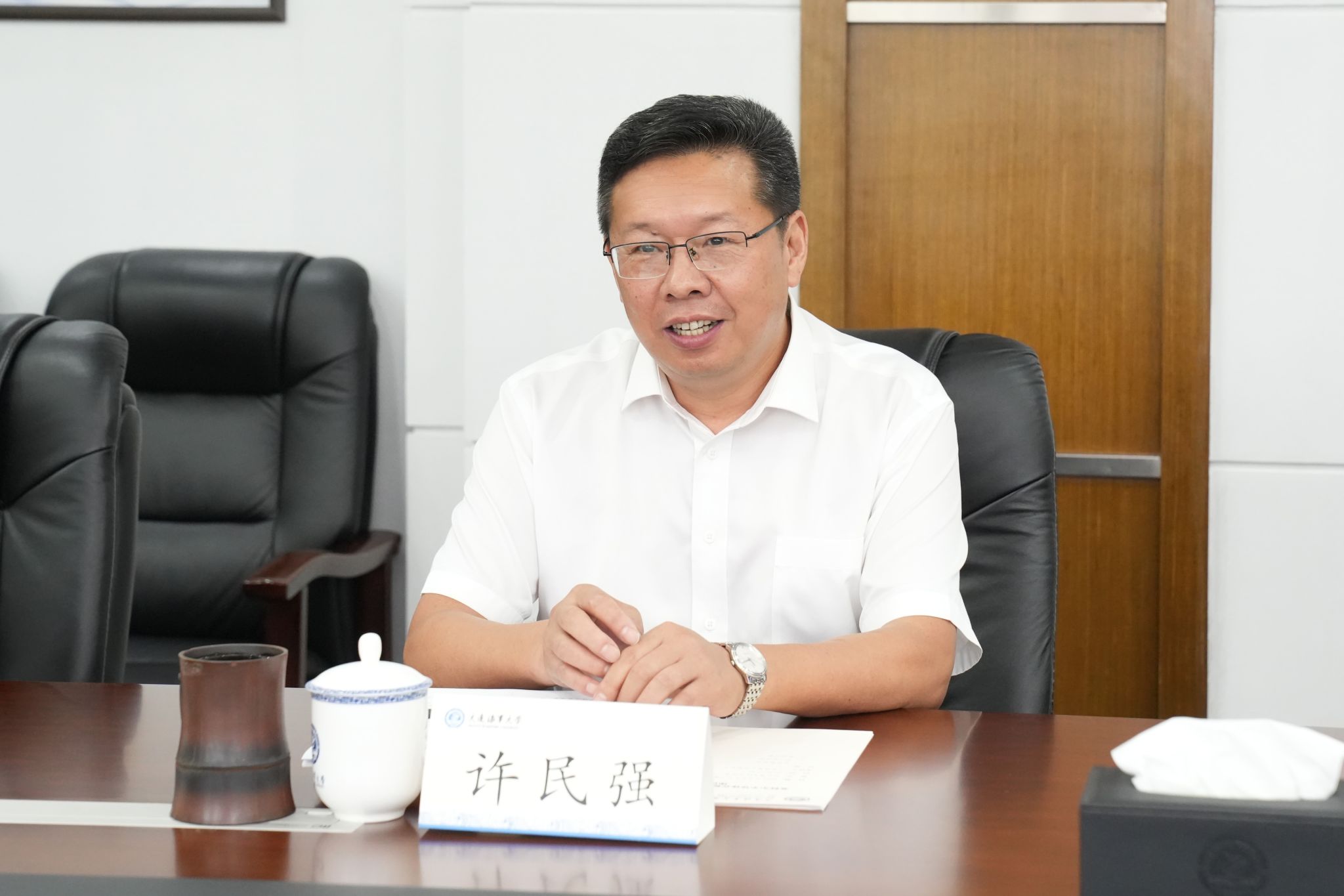 许民强代表学校对车广礼一行的来访表示欢迎。他表示,英特尔作为全球知名企业,近年来对学校发展建设给予了大力支持,双方具有良好的合作基础和广阔的合作前景,希望未来与大连英特尔开展更广泛、更深入、更务实的合作。