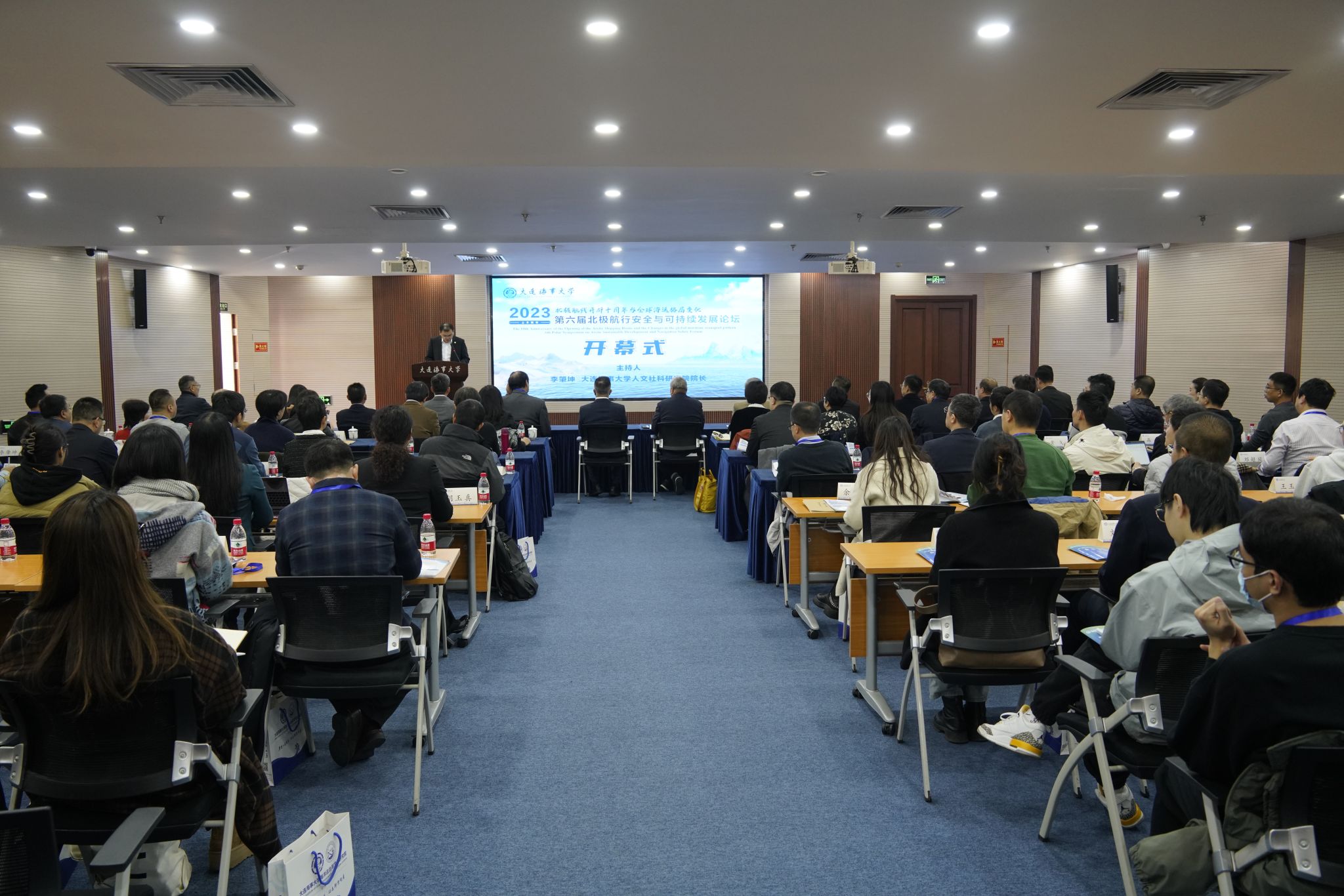 11月16日,由我校与中国航海学会、大连市人民政府联合主办的“第六届北极航行安全与可持续发展论坛”在凌水国际会议厅举行。中国航海学会副理事长李世新、大连市人民政府副秘书长汤凯、外交部北极事务特别代表高风、中国潜水救捞行业协会理事长宋家慧、交通运输部北海救助局副局长张辉侠、中国国际可持续交通创新和知识中心副主任郑怀宇、我校副校长初北平、上海国际问题研究院原副院长杨剑、大连市交通运输局副局长方德岩、大连市气象局副局长徐凤莉、中运海运特运股份有限公司安全质量部总经理王海明、我校极地航运与安全研究院名誉院长蔡梅江等出席论坛活动。李世新、汤凯、初北平分别代表主办方中国航海学会、大连市人民政府、大连海事大学致辞,人文社科院院长李肇坤主持开幕式。