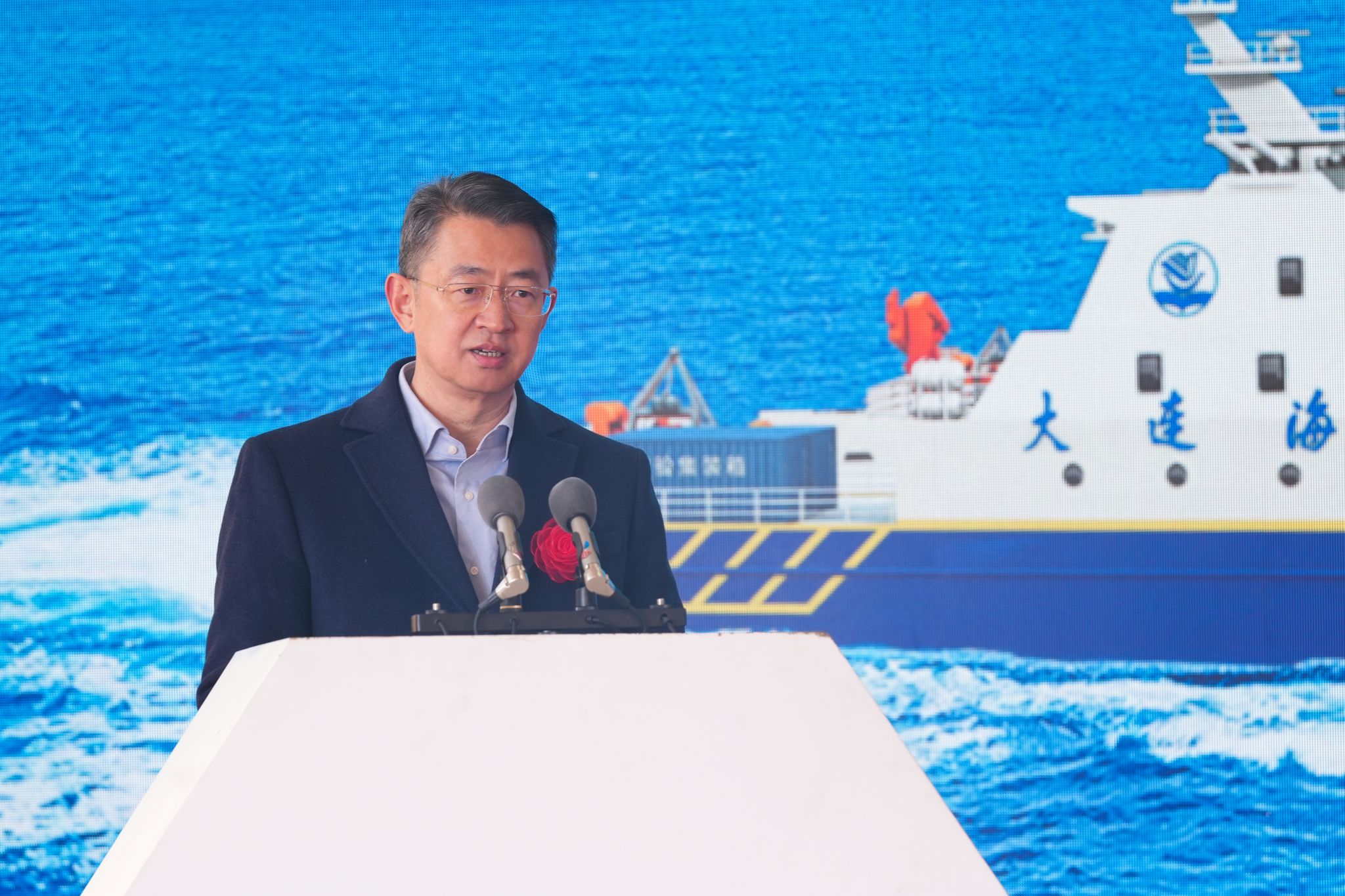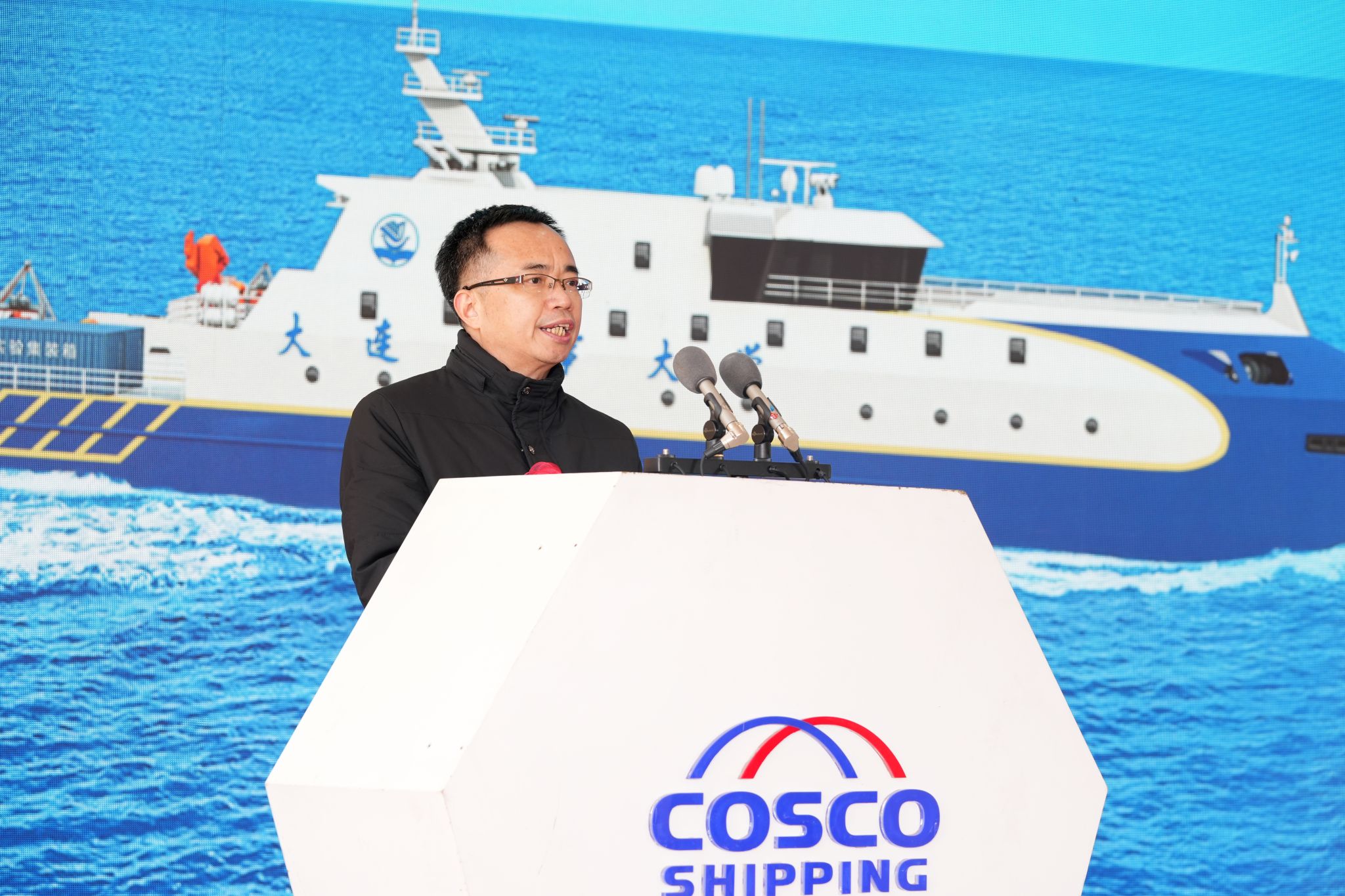 严承祥代表中远海运重工有限公司致辞。他对参与“两用船”建造的全体人员表示感谢。他说,大连海事大学与中远海运重工有限公司始终密切交流,持续互动,在科技创新、人才培养、船舶修造等多个方面保持着良好合作关系。中远海运重工有限公司将加速推进产学研融合发展,促进校企双方在船舶数字化转型升级、绿色低碳发展、智能制造与智能研究等相关领域更加深入合作,取得更大成绩。他表示,将高质高效推进“两用船”建造,力争将“两用船”打造成精品船舶。