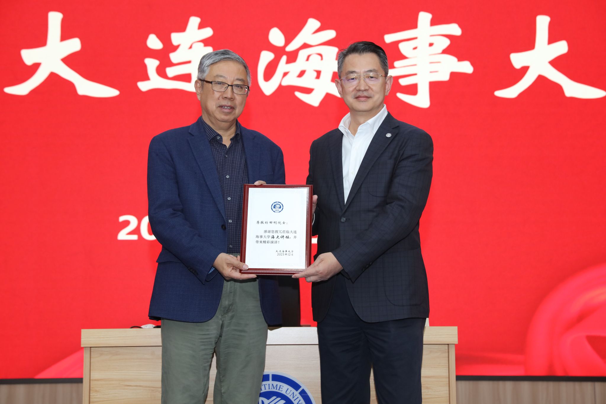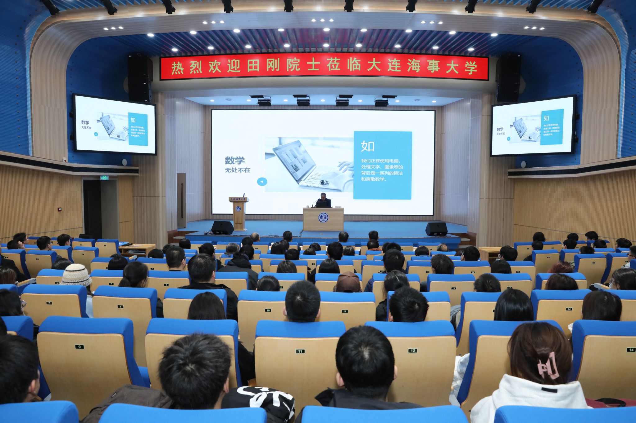 12月24日,大连海事大学理学院、科技处共同邀请中国科学院院士、美国人文与科学院外籍院士、中国数学会理事长田刚教授做客“海大讲坛”,为我校师生带来题为“走进数学”的主题报告。校长单红军出席报告会。