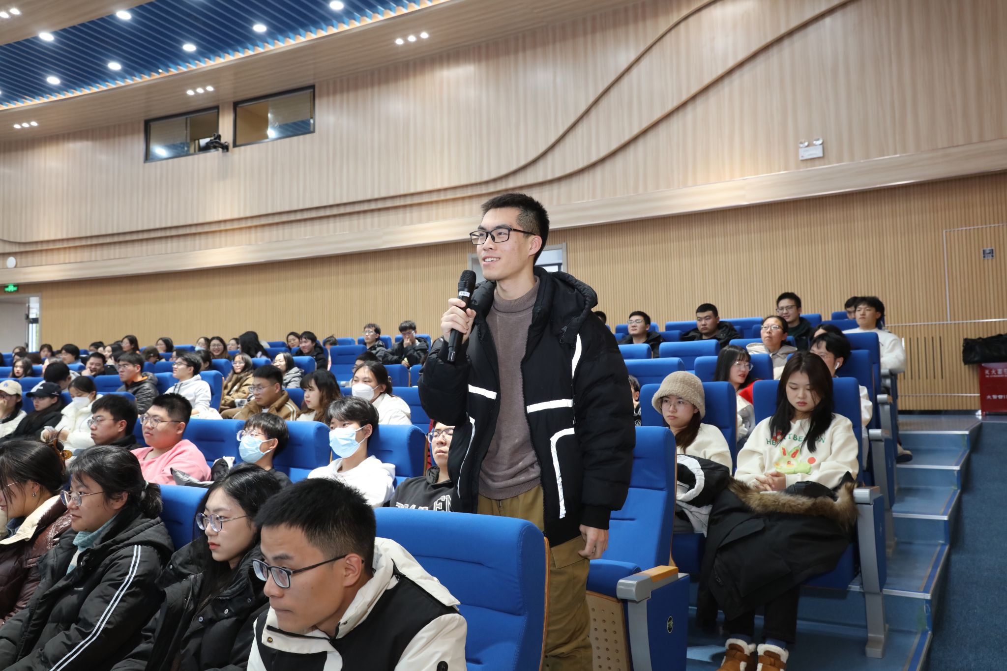 现场交流环节,师生踊跃提问,向田刚请教在学习和科研过程中与数学相关的问题、中国数学会2023年年会的情况和学会评奖的有关问题。