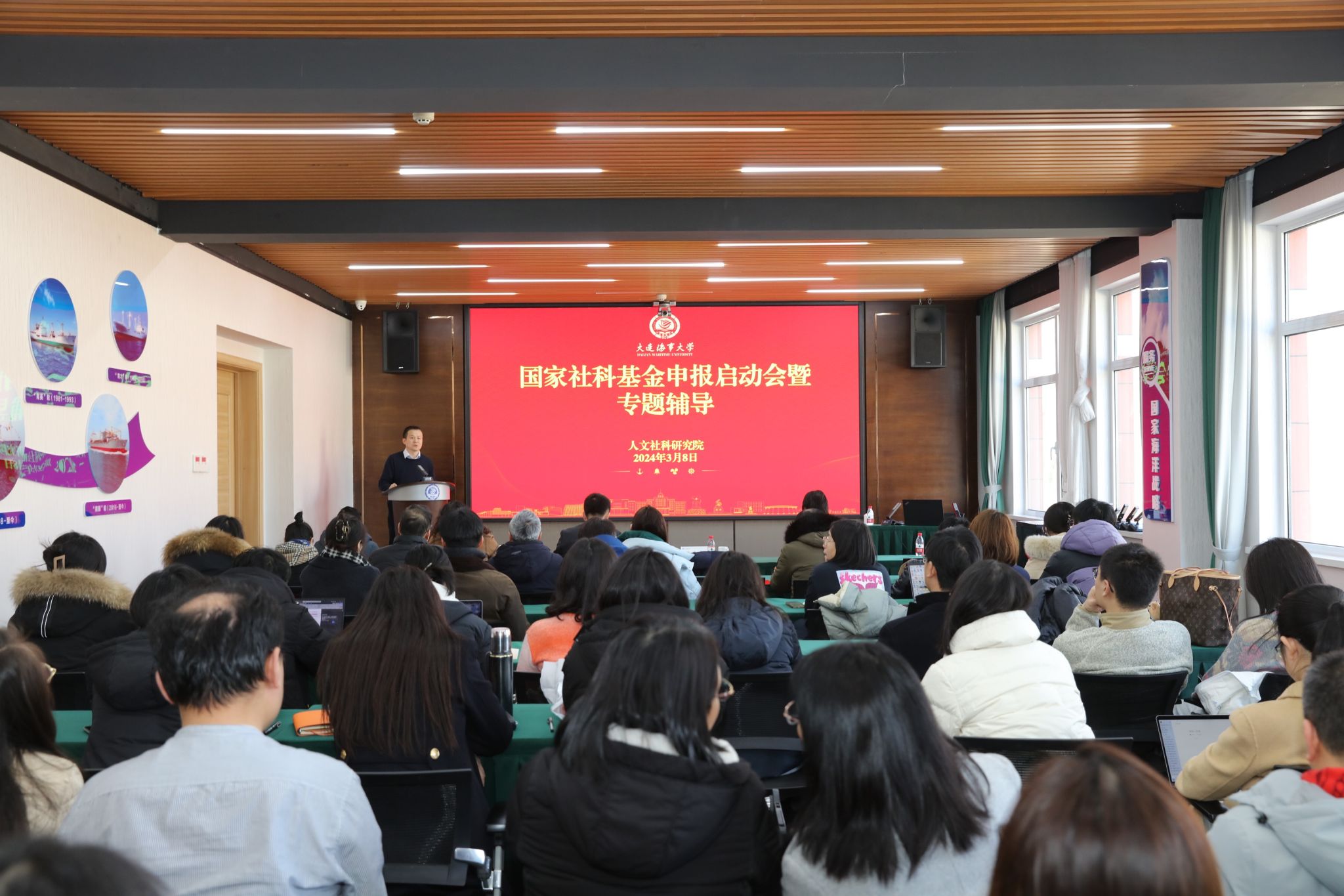 曾庆成进行动员讲话。他强调,学校一直高度重视社科基金项目申报工作,主动作为全面实施《大连海事大学人文社科提升计划(2022-2035)》,以国家级社科重大重点项目培育为牵引,力争实现申报获批数量新突破,进而实现社科工作从“跟跑”转为“并跑”,全面提升我校人文社科发展水平。他要求全体人文社科工作人员要面向国家重大发展战略做好选题,各学院要深入挖掘学科潜力,要加强交流协作,跨学科融合思考问题,要认真学习最新申报要求和流程,确保申报材料的质量和完整性,务必做到提前规划、充分准备,多方求证、一次成型,为我校建设世界一流海事大学贡献力量。