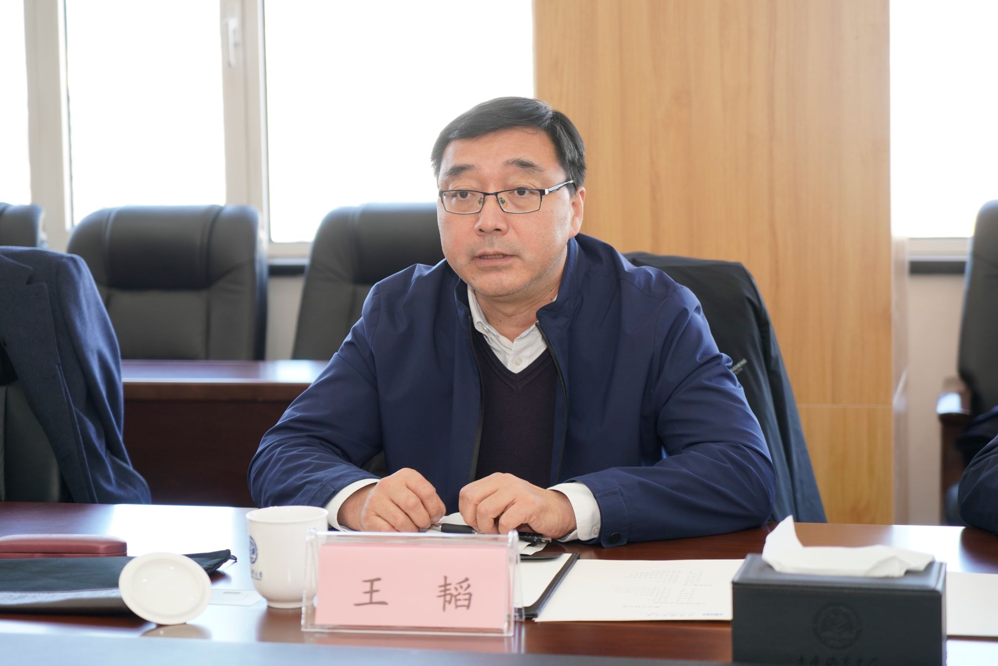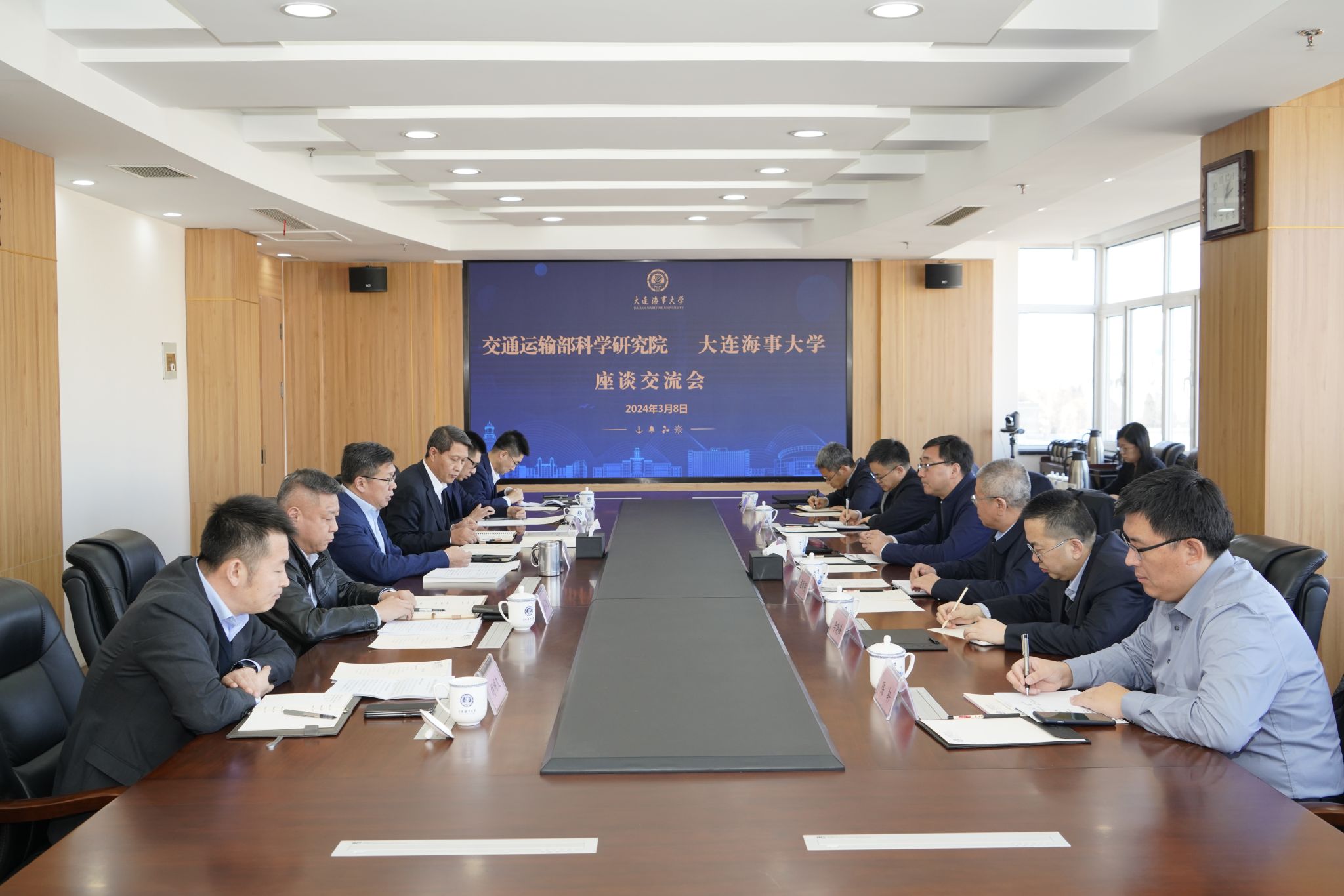 3月8日,交通运输部科学研究院党委书记王韬一行来校调研,学校党委书记许民强在综合楼822会议室会见王韬一行并进行座谈。座谈会由副校长赵友涛主持。