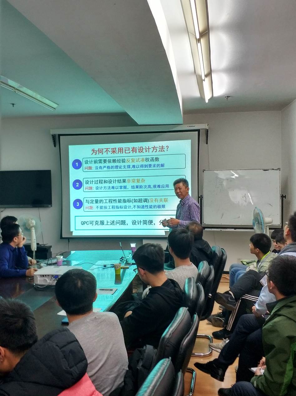 讲座中,张卫东教授围绕非线性不确定系统的特征压缩控制这一主题,首先介绍了线性系统的特征压缩控制方法的背景及其应用,帮助与会者准确理解特征压缩控制方法的基本内涵,随后介绍了将连续可导非线性对象的特征信息压缩在低阶变系数线性模型中,线性模型的系数是关于工作点的函数,在给定的工作点,线性模型具有和非线性对象等效的动态响应,然后通过线性鲁棒控制器设计方法实现非线性系统的控制。