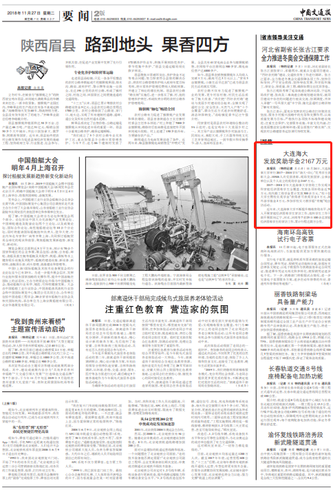 本报讯 (特约记者 吴江涛) 11月24日,大连海事大学举行2017—2018学年“海大·印心”优秀学生表彰大会,10546人次受到表彰,现场发放国家、企事业单位以及个人设立的奖助学金2167万元。