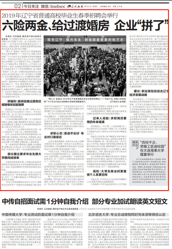 【辽沈晚报】2019年辽宁省普通高校毕业生春季招聘会举行 六险两金、给过渡婚房 企业“拼了”