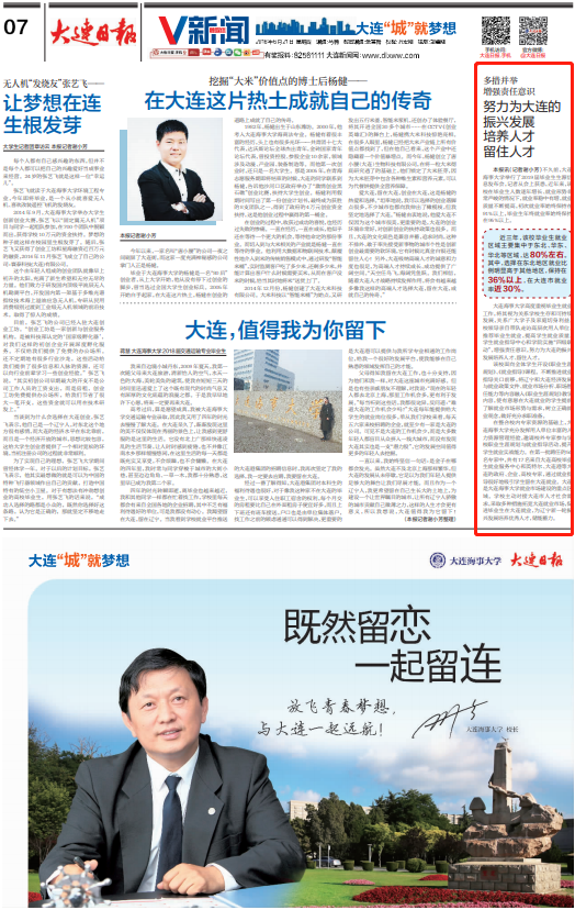 大连海事大学高度重视毕业生就业工作,将其视为关系学校生存和可持续发展,关系广大学子及家庭切身利益。校领导亲自带队走访高层次用人单位,推荐毕业生就业,提高学生就业质量。学生就业指导中心和学院实施“四级联动”,增强责任意识,努力为大连的振兴发展培养人才、留住人才。