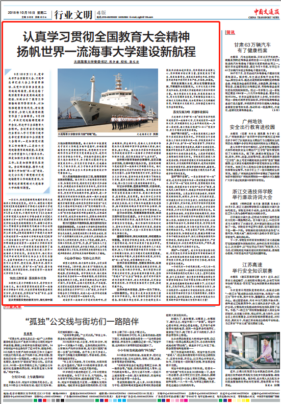 【中国交通报】认真学习贯彻全国教育大会精神 扬帆世界一流海事大学建设新航程