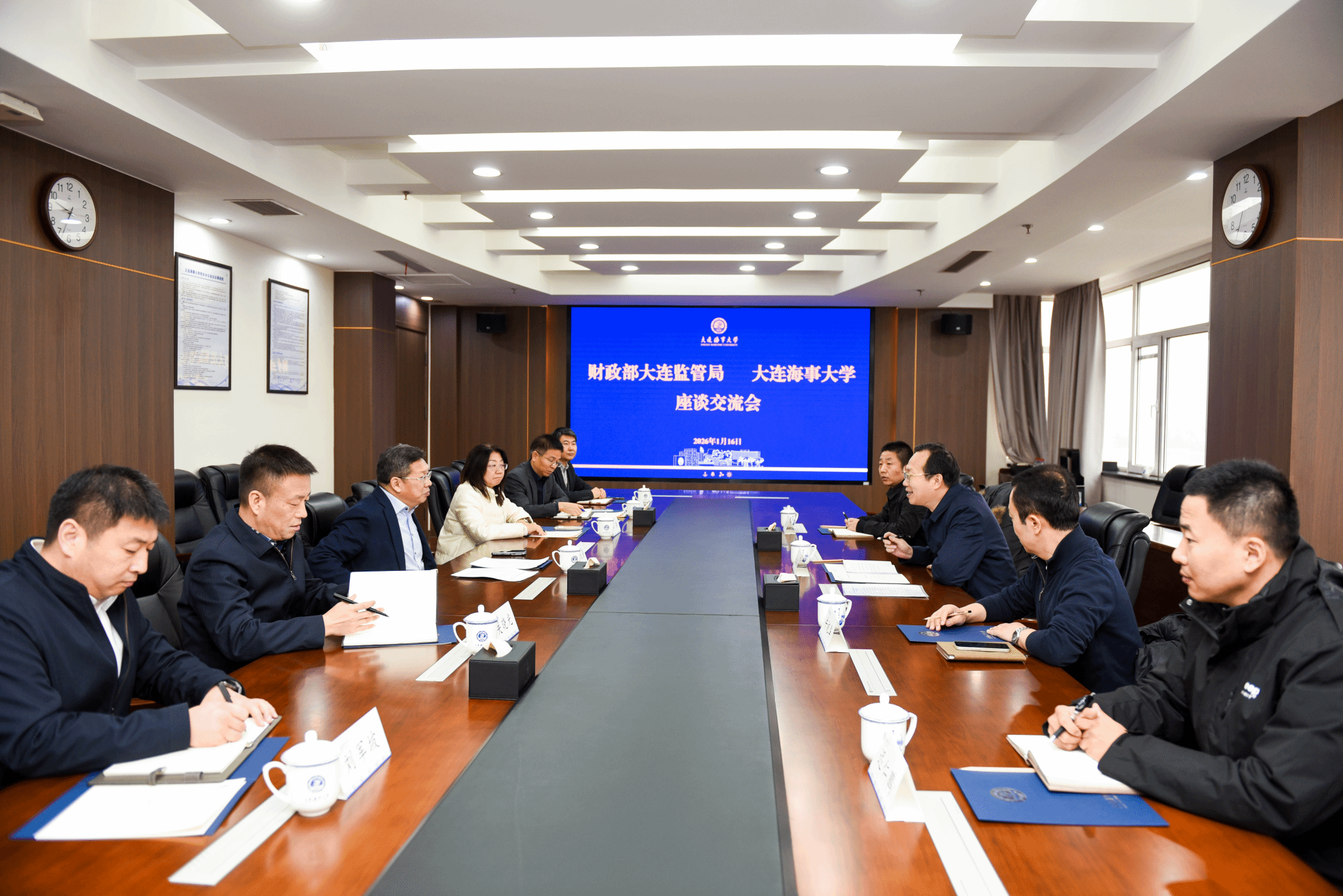 1月16日上午,财政部大连监管局党组书记、局长张政伟一行来校调研。校党委书记许民强在823会议室会见张政伟一行并进行座谈交流。许民强代表学校对财政部大连监管局长期以来对学校财务工作的常态化监督以及对学校各项事业的悉心指导、大力支持帮助表示衷心感谢。他简要介绍了学校的校史校情、办学特色、学科发展、科研创新、内控管理等方面情况。他表示,学校正全力推进“国内顶尖、世界一流的研究型海事大学”建设,希望财政部大连监管局继续加强对学校的监督指导,...