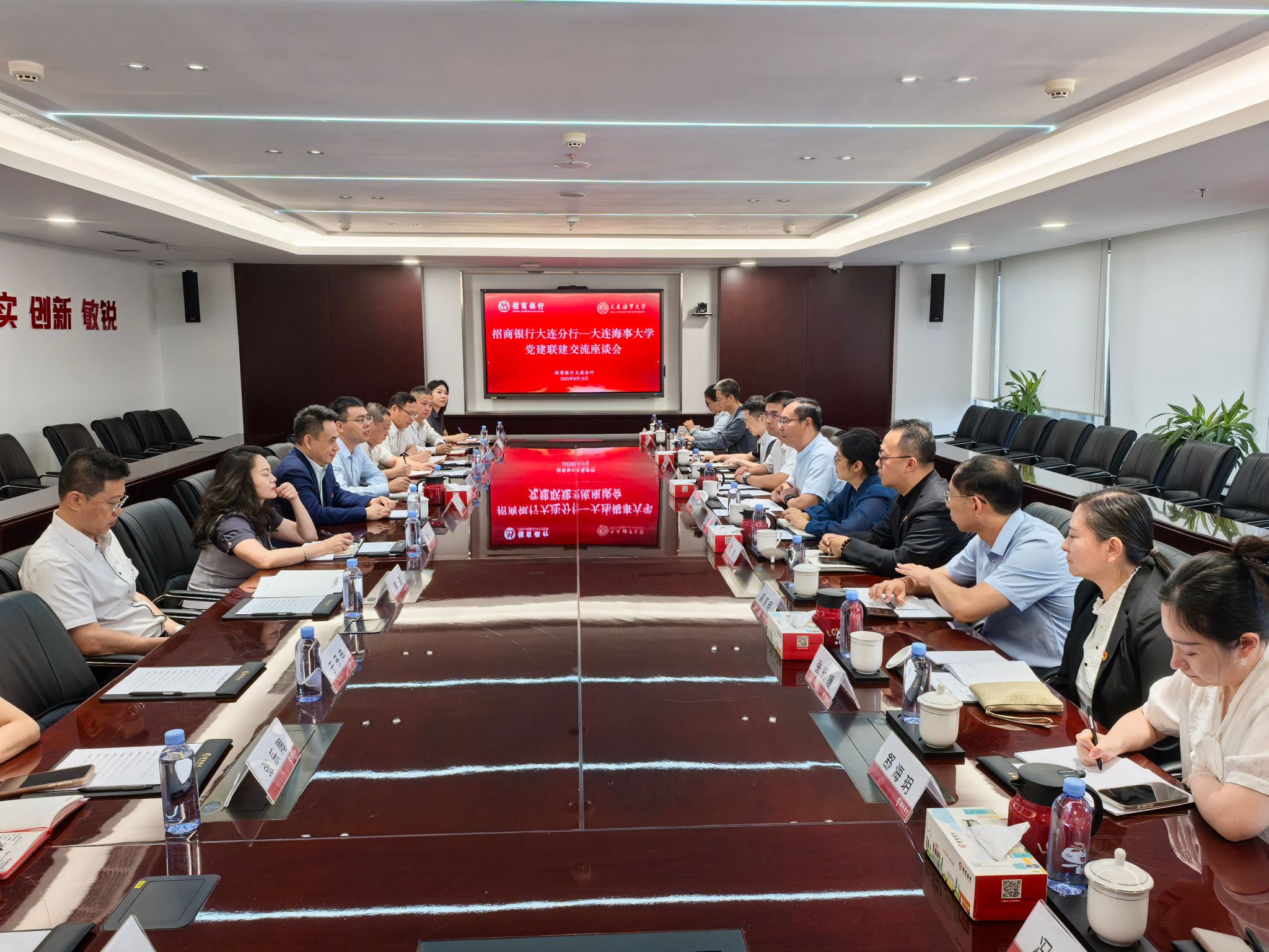 9月19日上午,学校纪委办公室(审计处)和工会党支部、网络信息与综合服务中心党支部与招商银行大连分行党委在分行开展党建联建活动。校纪委书记罗钟山,分行党委书记、行长于泽增参加活动。于泽增对罗钟山一行表示热烈欢迎,他围绕党建联建主题,详细介绍了分行党建团建系统、纪检监察系统、审计系统、工会系统等数字化平台建设情况,表示愿意为大连海事大学推进数字化进程提供有益帮助,携手共创一流。同时也感谢学校多年来为分行输送大批优秀毕业生,...