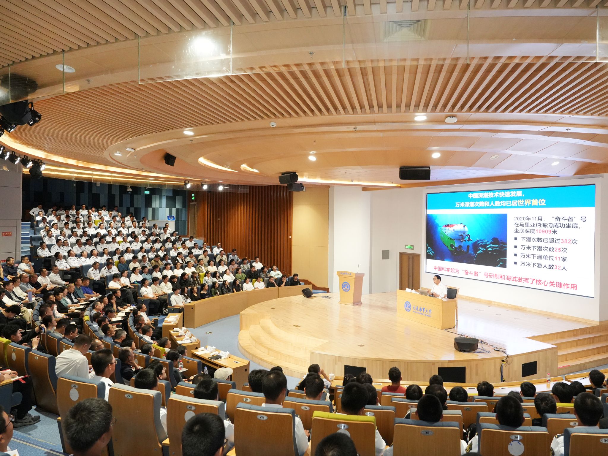 9月22日,中国科学院院士、中国科学院原院长白春礼来校作题为《勇往直“潜”—— 快速崛起的中国深海科技》的报告。大连市人大常委会主任王启尧,副主任徐少达、卢林、艾华、刘士武,秘书长王天伟参加报告会。市人大常委会委员、专委会委员、全体机关干部以及大连海事大学师生代表在现场聆听了专题报告。报告会由学校党委书记许民强主持。在报告中,白春礼系统梳理了世界载人深潜的发展历史与演进脉络,随后详细介绍我国深潜科技领域的最新突破与标志性成就。...