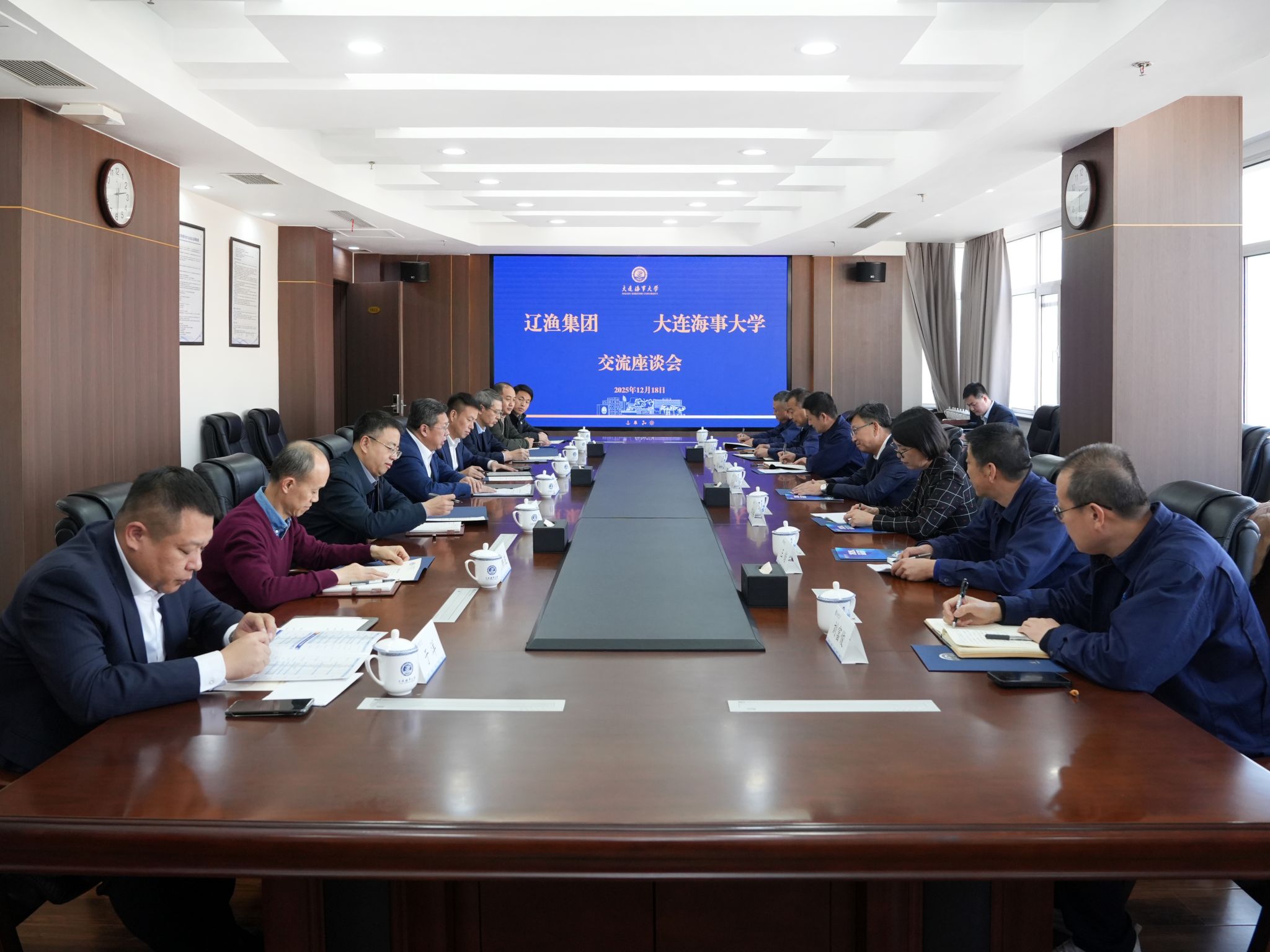 12月18日,辽渔集团党委书记、董事长吕大强,副总经理刘冬梅一行来校调研,学校党委书记许民强在综合楼823会议室会见吕大强一行并进行座谈交流。许民强对吕大强一行的到来表示热烈欢迎。他简要介绍了学校在人才培养、科研创新等方面所取得的成果,并对辽渔集团长期以来对学校建设发展给予的支持与帮助表示衷心感谢。他表示,辽渔集团与海大同处大连,共同服务于辽宁海洋经济发展,双方合作基础深厚、空间广阔,希望在科研合作、成果转化等领域进一步深化协作,...